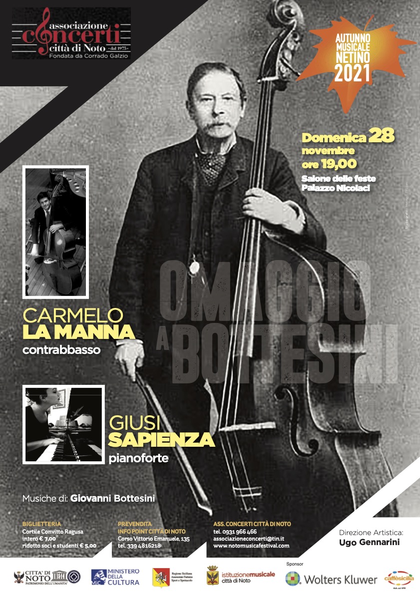 Domenica 28 novembre alle ore 19:00 l’Associazione Concerti Città di Noto omaggia il contrabbassista e compositore Giovanni Bottesini in occasione del bicentenario della nascita.